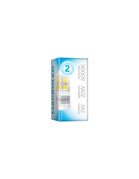 Ver todos LimpiezaMacroled G4-2cw No Dim Bi-pin Led Lampara 2w 12v Frio 6000k 200lm 16x36mm