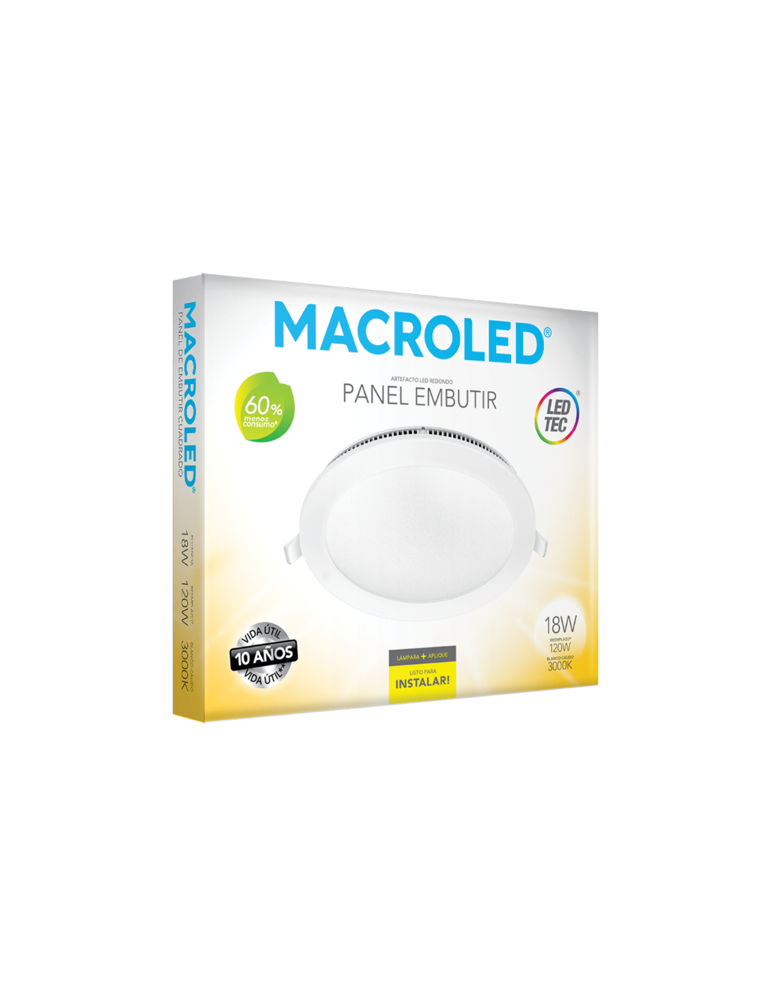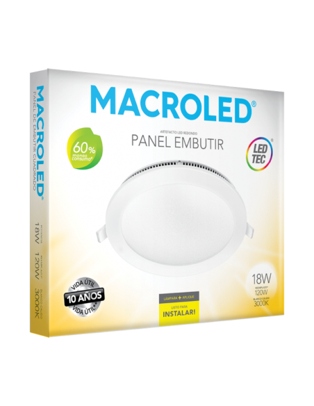 Ver todos Zapatillas Prolongadores Y Cables Armados Con Cable Prolongaciones Sin Cable- Macroled Per18ww Panel Led Embutir Redondo 18w 3000k Calido 221 X 18 Blanco